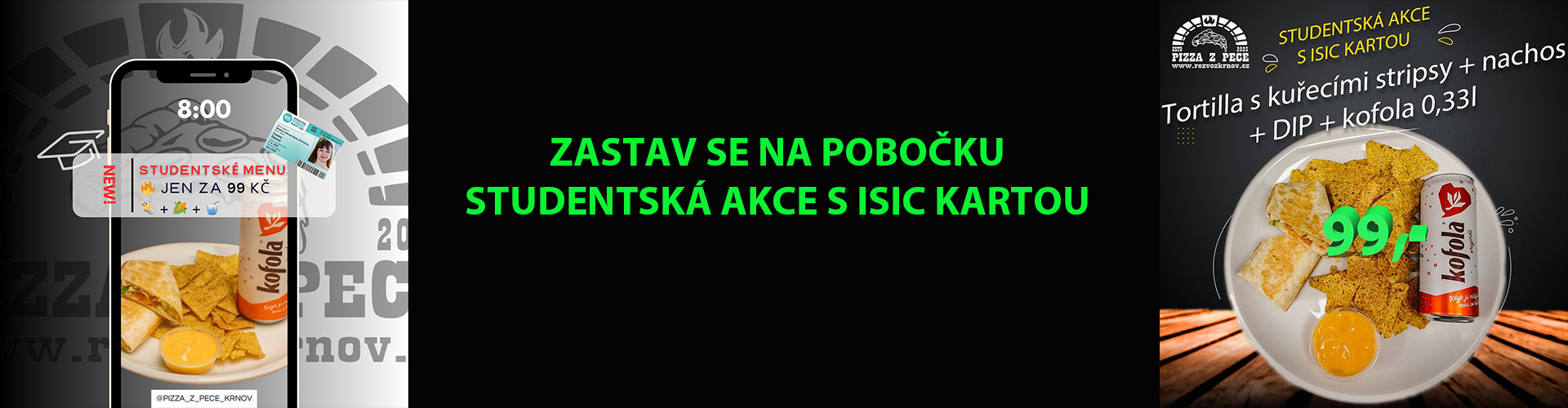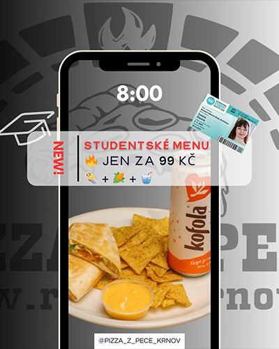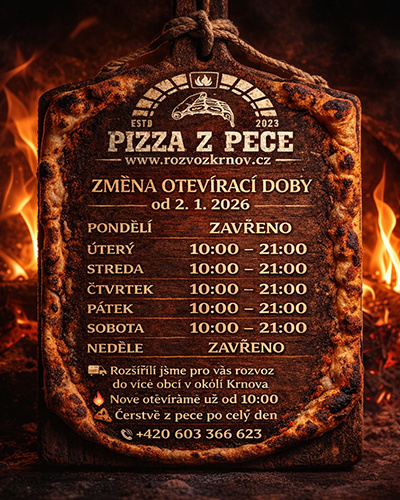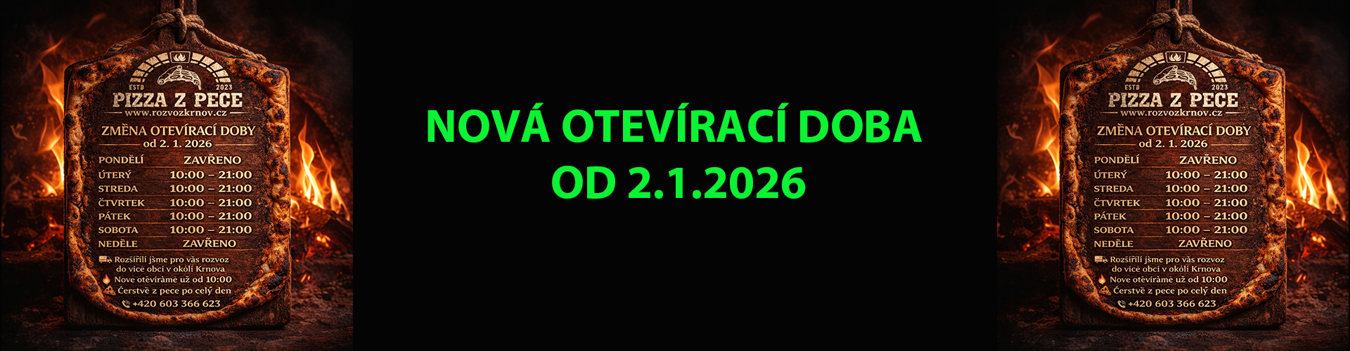 Pozor pozor, žádné zmražené rozpékačky. U nás jako u jediných v Krnově můžeš ochutnat pizzu dělanou na ohní. Máme jí ve dvou velikostech. Klasickou 33cm a malou 26 cm